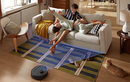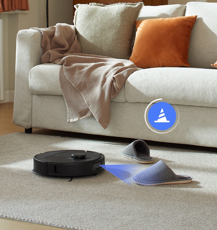 Tehnologie reactiva Evitarea obstacolelor Alimentata de lumina structurata, este gata sa detecteze si sa navigheze in jurul obstacolelor fara efort, chiar si in camere aglomerate cu obiecte imprastiate pe podea. |