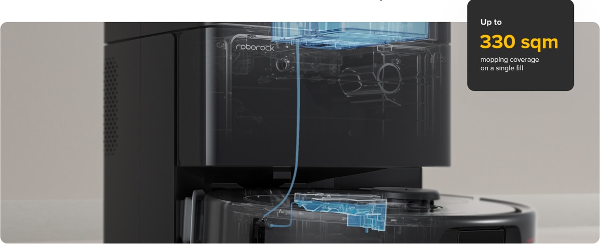 Reumplere automata a rezervorului Dock-ul multifunctional reumple automat rezervorul de apa al robotului in timpul curatarii ori de cate ori nivelul apei este scazut. Poate curata pana la 330 mp (3552 sqft) inainte de a fi nevoie sa umpleti manual rezervorul de apa curata. |