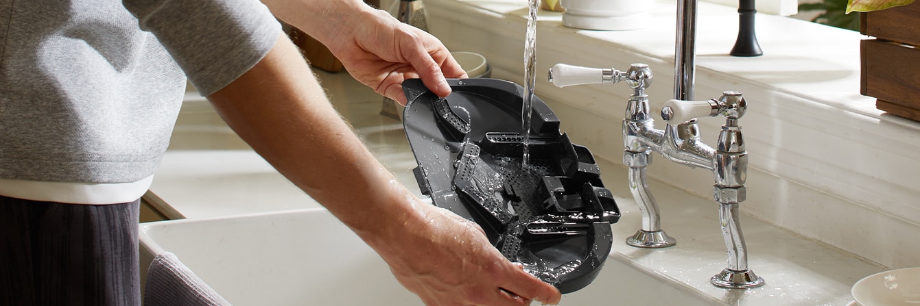 Baza detasabila a docului Intreaga baza a docului poate fi indepartata pentru o curatare temeinica, reducand acumularea de noroi si murdarie in timp. Filtrul mare imbunatatit ajuta la reducerea suplimentara a infundarii. |