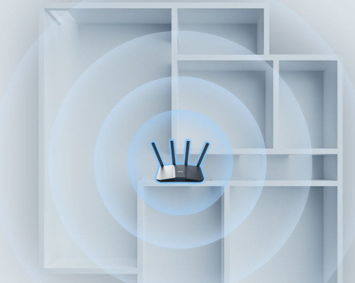 Designul robust al ASUS RT-BE82U ofera performante WiFi si de retea de nivel superior si fiabilitate superioara. Cu patru antene externe si Sase module front-end de mare putere, acesta elimina zonele moarte WiFi, oferind semnale fiabile in toate directiile.