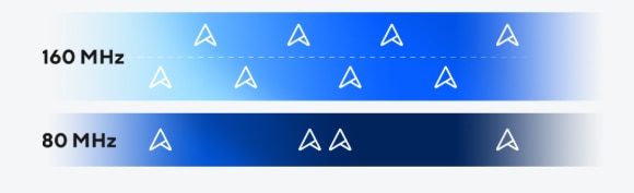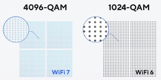 Transmisie 4K-QAM eficienta Comparativ cu 1024-QAM cu WiFi 6/6E, 4096-QAM permite fiecarui semnal sa incorporeze mai dens cantitati mai mari de date, oferind o transmisie de date cu pana la 20% mai eficienta. |