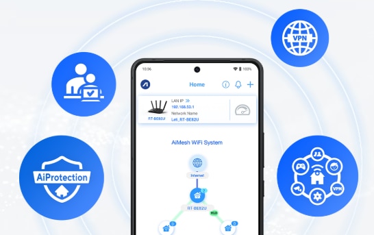 Retea personalizata extensibila Tehnologia ASUS AiMesh asigura ca reteaua WiFi din intreaga locuinta ramane protejata sub acelasi SSID. Noul Smart Home Master deblocheaza si mai multe setari avansate pentru personalizare. |