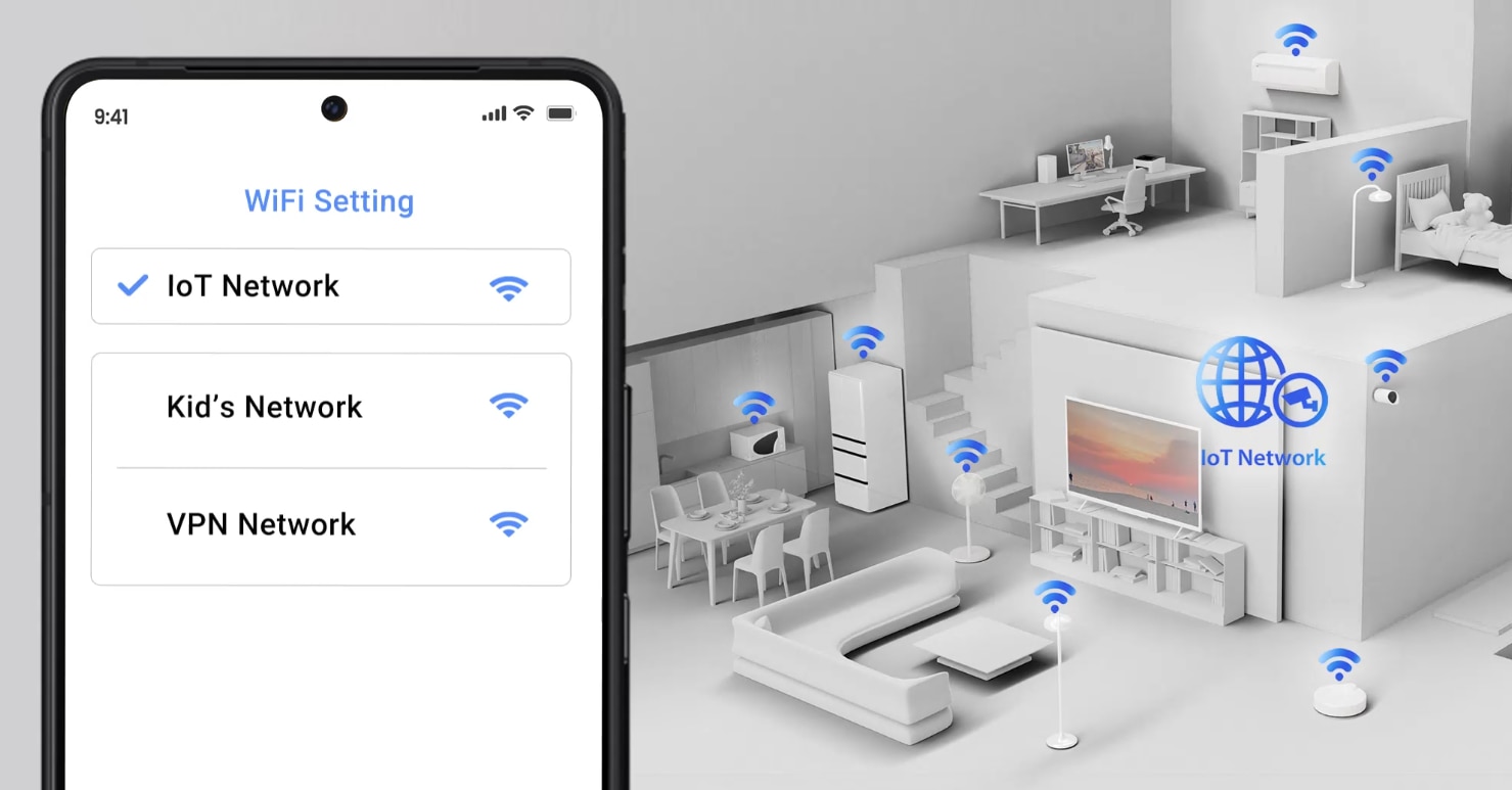 Retea IoT Configurati si gestionati toate dispozitivele IoT sub un singur SSID securizat pentru a oferi o securitate sporita cu protectie de nivel comercial. |