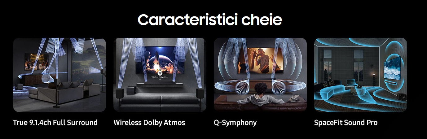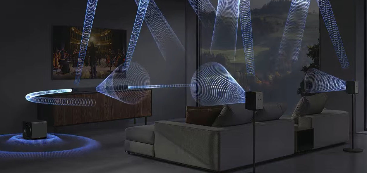 Simte sunetul care se misca de jur imprejurul tau pentru a crea un mediu de ascultare extins, bogat in detalii - datorita celor 9 canale frontale si laterale, inclusiv difuzoarele din spate, un canal subwoofer si 4 canale cu difuzare verticala.