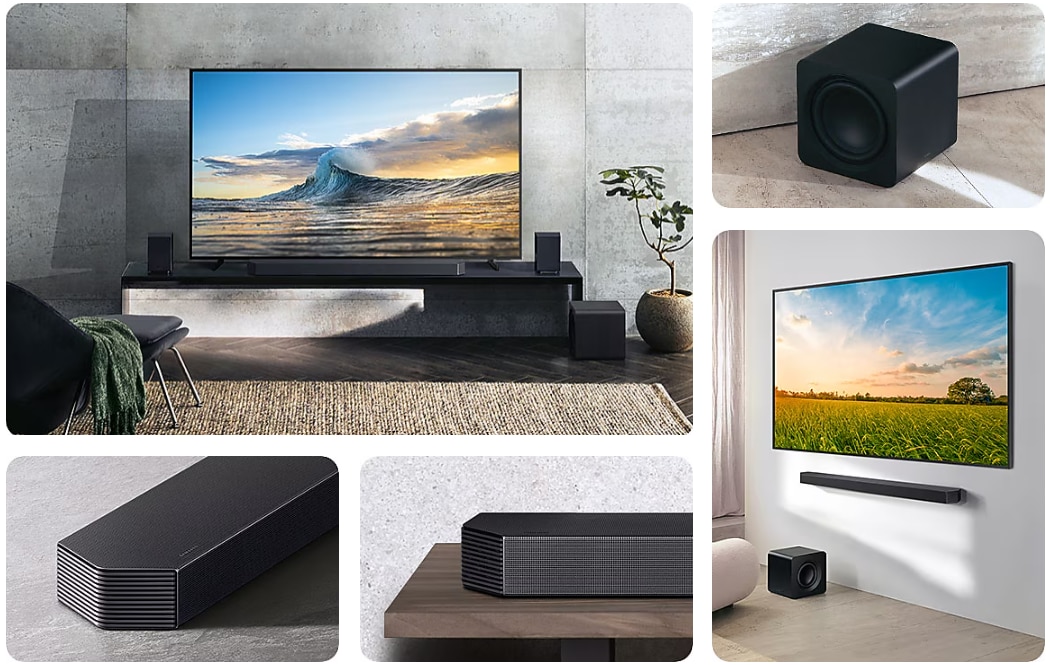Surround Sound Expansion Adaptive Sound Mode Q-Symphony HDR10+ SmartThings App SpaceFit Sound A.V.A. (Active Voice Amplifier) Game Mode Pro