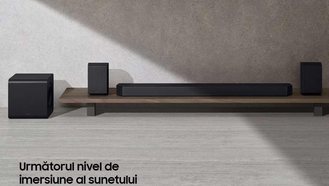 Bucura-te de un sunet uimitor, adaptat incaperii tale. Soundbar-ul analizeaza spatiul si ajusteaza sunetul in consecinta - optimizeaza chiar si basul - pentru claritate si imersiune totala.