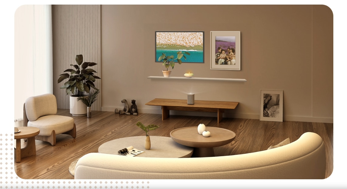 Pentru o experienta imersiva, proiecteaza continutul preferat de pe telefon, folosind SmartThings sau AirPlay 2 pentru dispozitivele Apple.