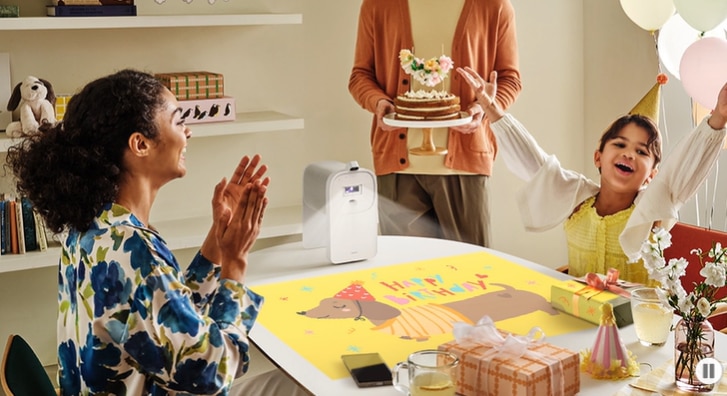 Descopera un nou mod de a te bucura de continutul tau mobil Sincronizare perfecta cu telefonul tau mobil Bucura-te de continutul tau de pe mobil impreuna cu familia, pe un ecran tactil mai mare, inclusiv de jocuri, aplicatii si multe altele. Conecteaza-ti telefonul prin SmartThings sau Apple AirPlay 2 si proiecteaza cu The Premiere 5. |